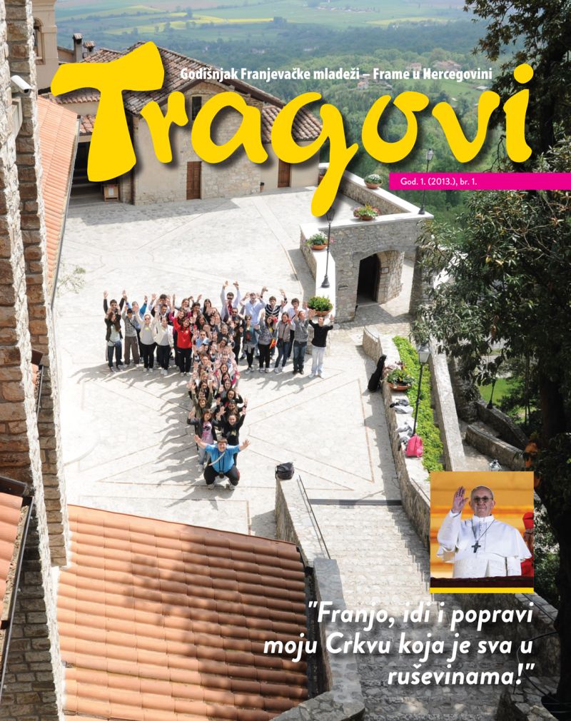 Izišao 1. broj Framinog godišnjaka „Tragovi“Ovih je dana iz tiska, u nakladi Hercegovačkog područnog bratstva Frame, izišao prvi broj lista Tragovi. Riječ je o godišnjaku Franjevačke mladeži – Frame u Hercegovini. List potpisuju glavni urednik Mateo Zadro i odgovorni urednik fra Josip Vlašić. Na 80 stranica ponuđeno je bogatstvo sadržaja, a osim predstavljanja života svih hercegovačkih Frama (Bukovica, Čerin, Čitluk, Drinovci, Gorica-Sovići, Gradnići, Humac, Klobuk, Kočerin, Kongora, Međugorje, Mostar, Posušje, Posuški Gradac, Roško Polje, Ružići, Seonica, Široki Brijeg, Šujica, Tomislavgrad, Vitina, Tihaljina) tu su i drugi poticajni tekstovi iz pera više autora iz reda samih framaša pa do svjetovnih franjevaca, fratara i sestara klarisa (Anđelka Oreč, Josipa Vukoja, fra Bože Milić, Marija Šaravanja, fra Mate Logara, Marijana Mikulić, Marija Brekalo, Andrea Odak, fra Miro Babić, Vedran Biokšić, Tomislav Gašpar, Mateo Zadro i fra Josip Vlašić).